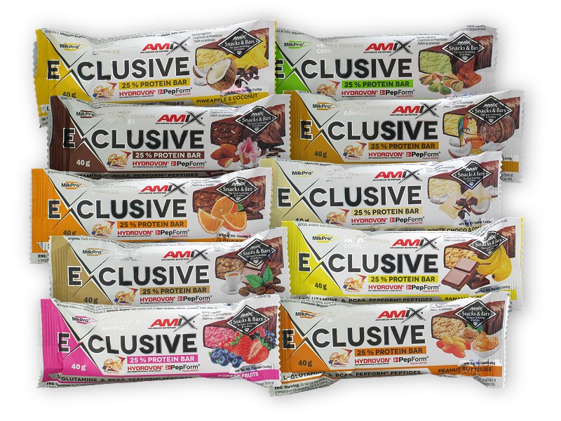 Amix™ Exclusive bar je proteinová tyčinka s minimálním obsahem 25% bílkovin.